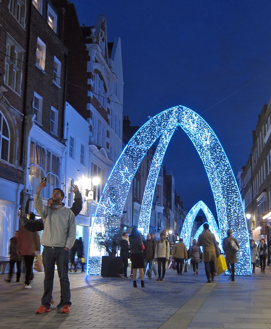 Shoppailuun kätevin kombo on Oxford Street ja Regent Street, sekä, jos teinejä on mukana, Carnaby Street siinä vieressä. Ihmisiä parveilee paljon, siispä meditaatio, paperipussiin hengittely ja anger management ovat valttia.