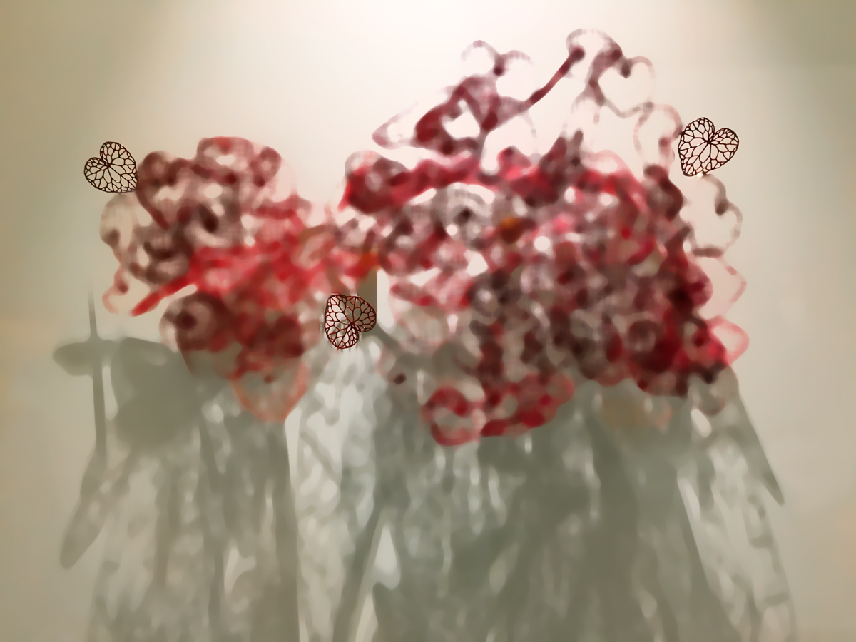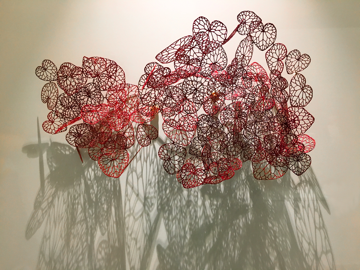 Maria Jauhiaisen rintakoru Hearts vuodelta 2009, esillä Designmuseossa Helsingissä.
